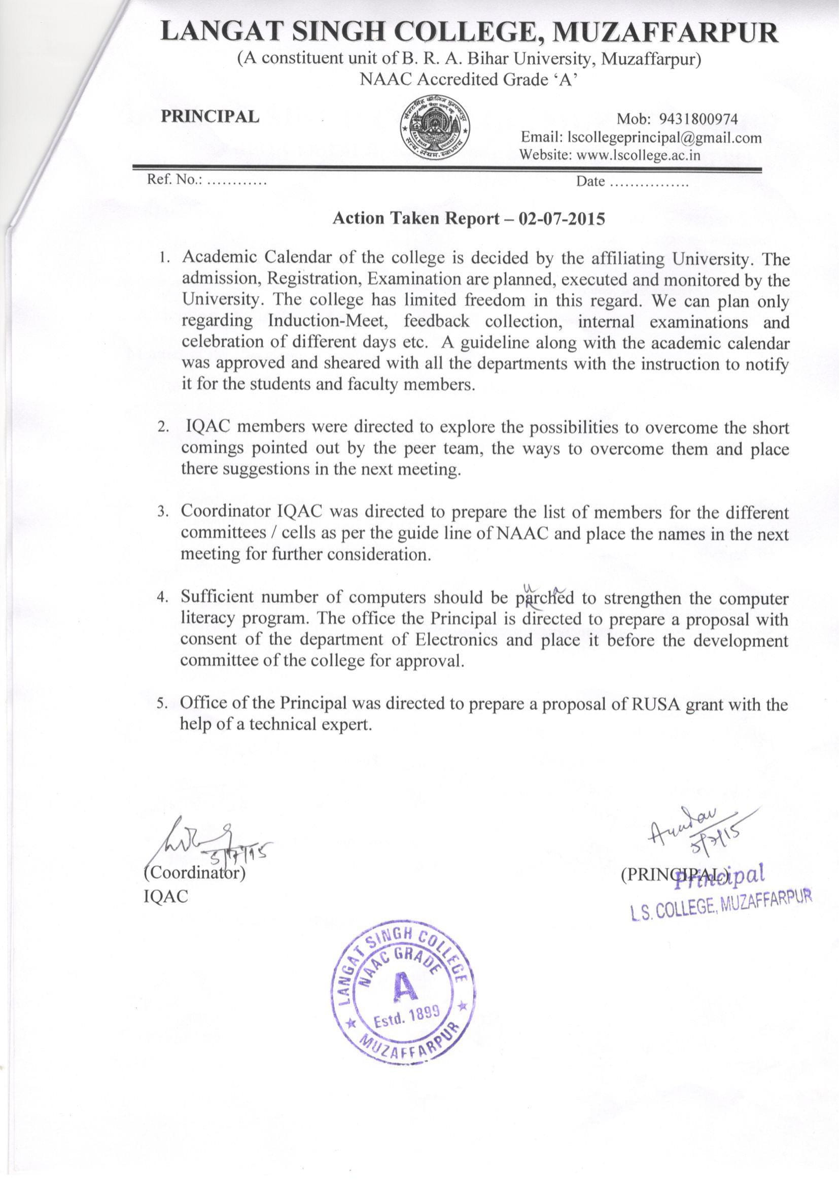 Action Taken Report Dated 05.07.2015