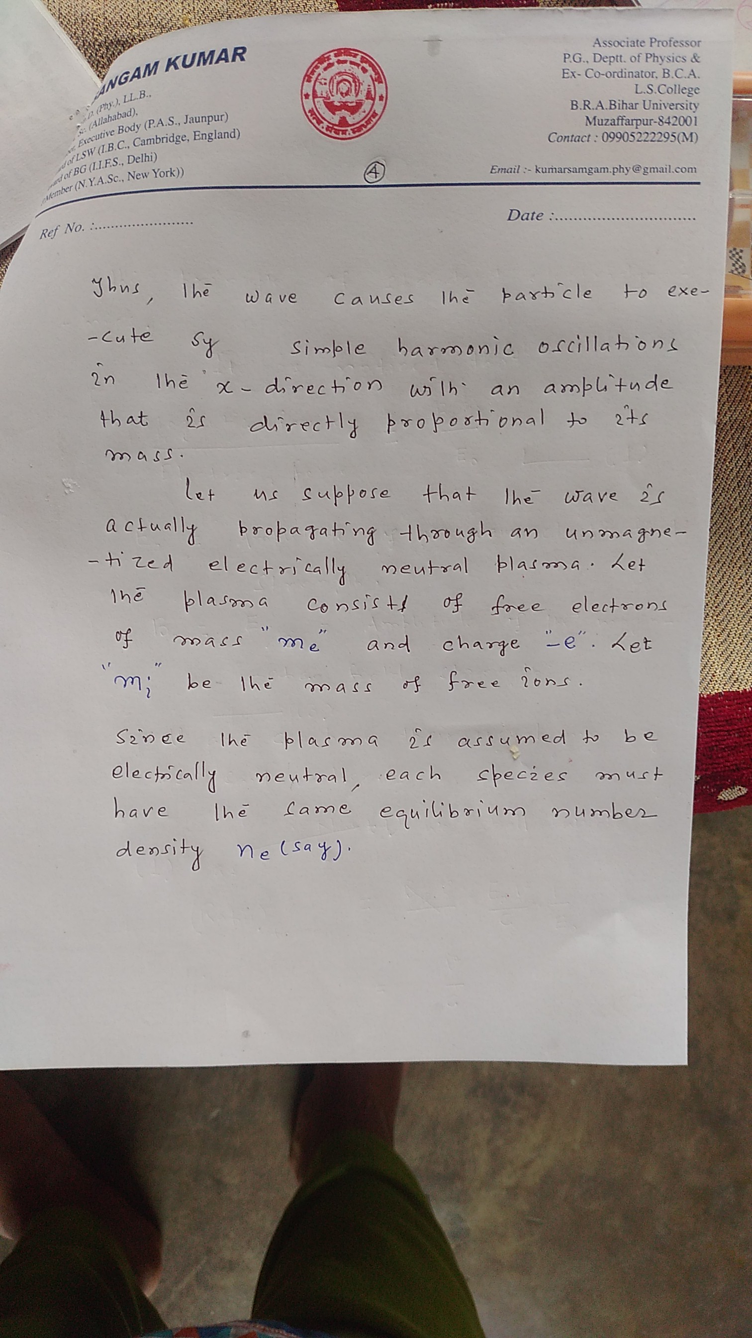 | 3 | PG - IV Semester | Plasma physics |