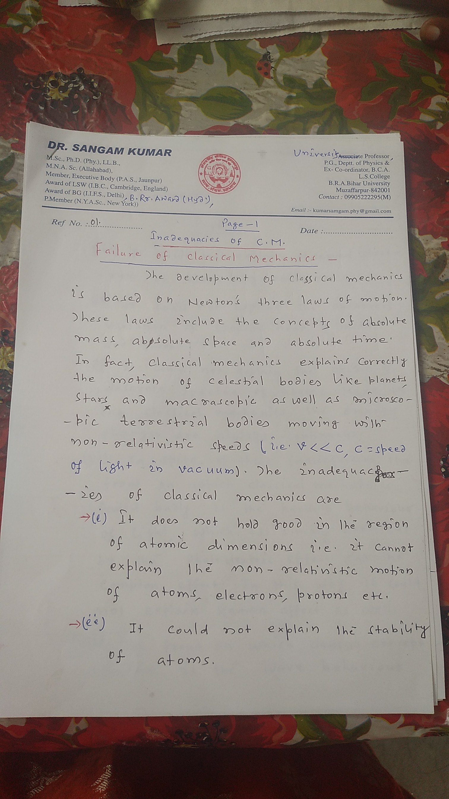 Teacher Name: Dr. Sangam Kumar