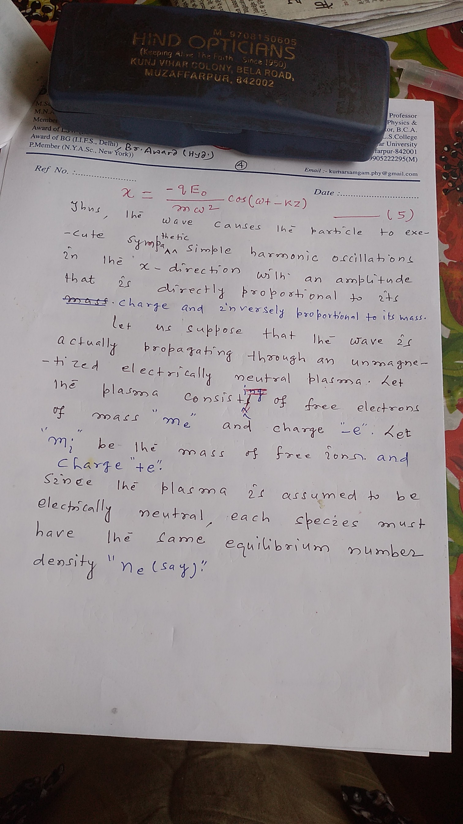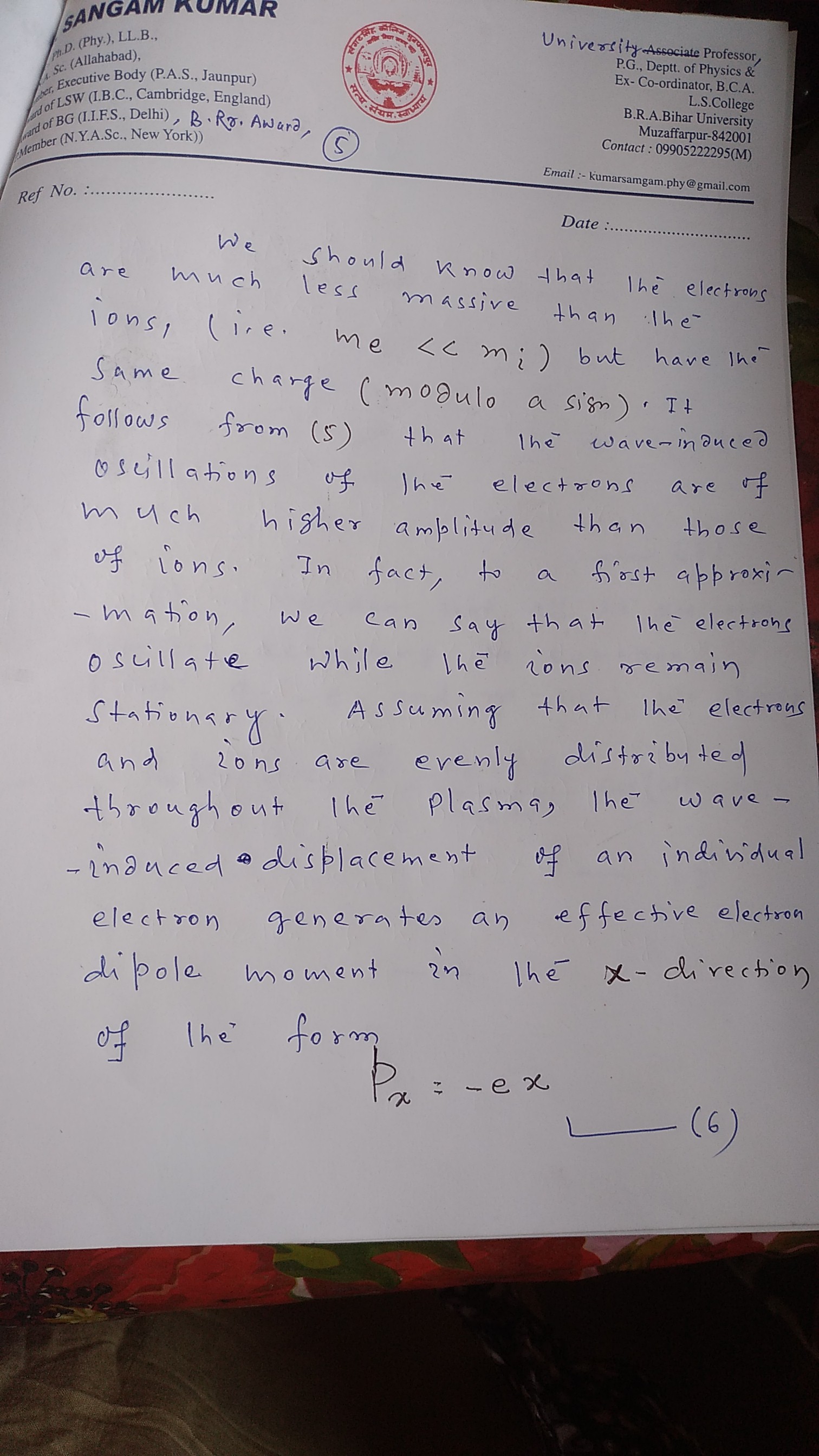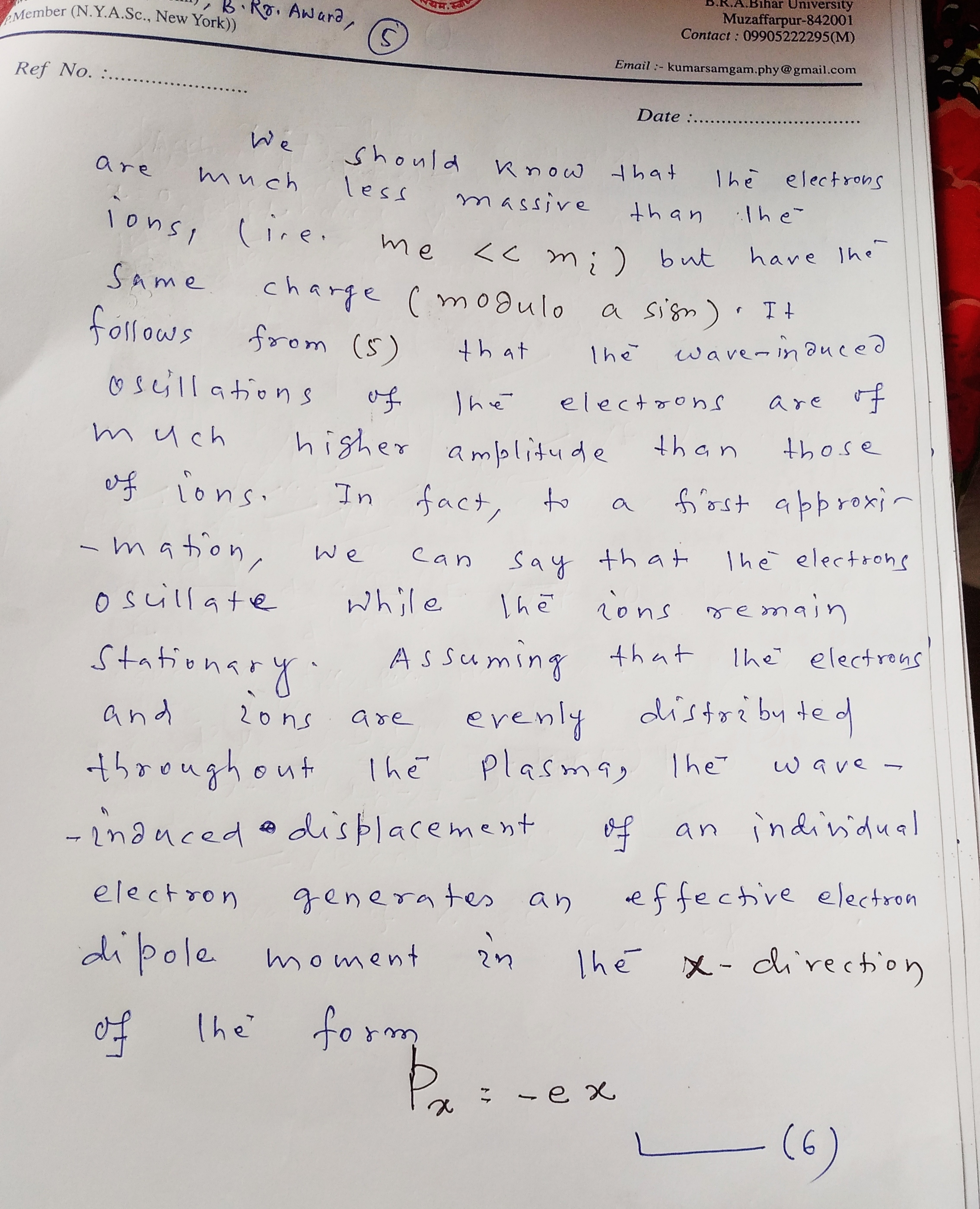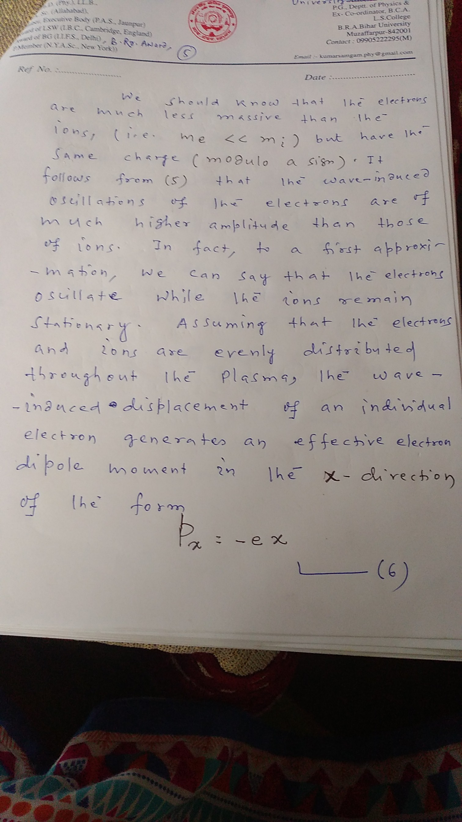 | 9 | PG - IV Semester | Plasma physics |