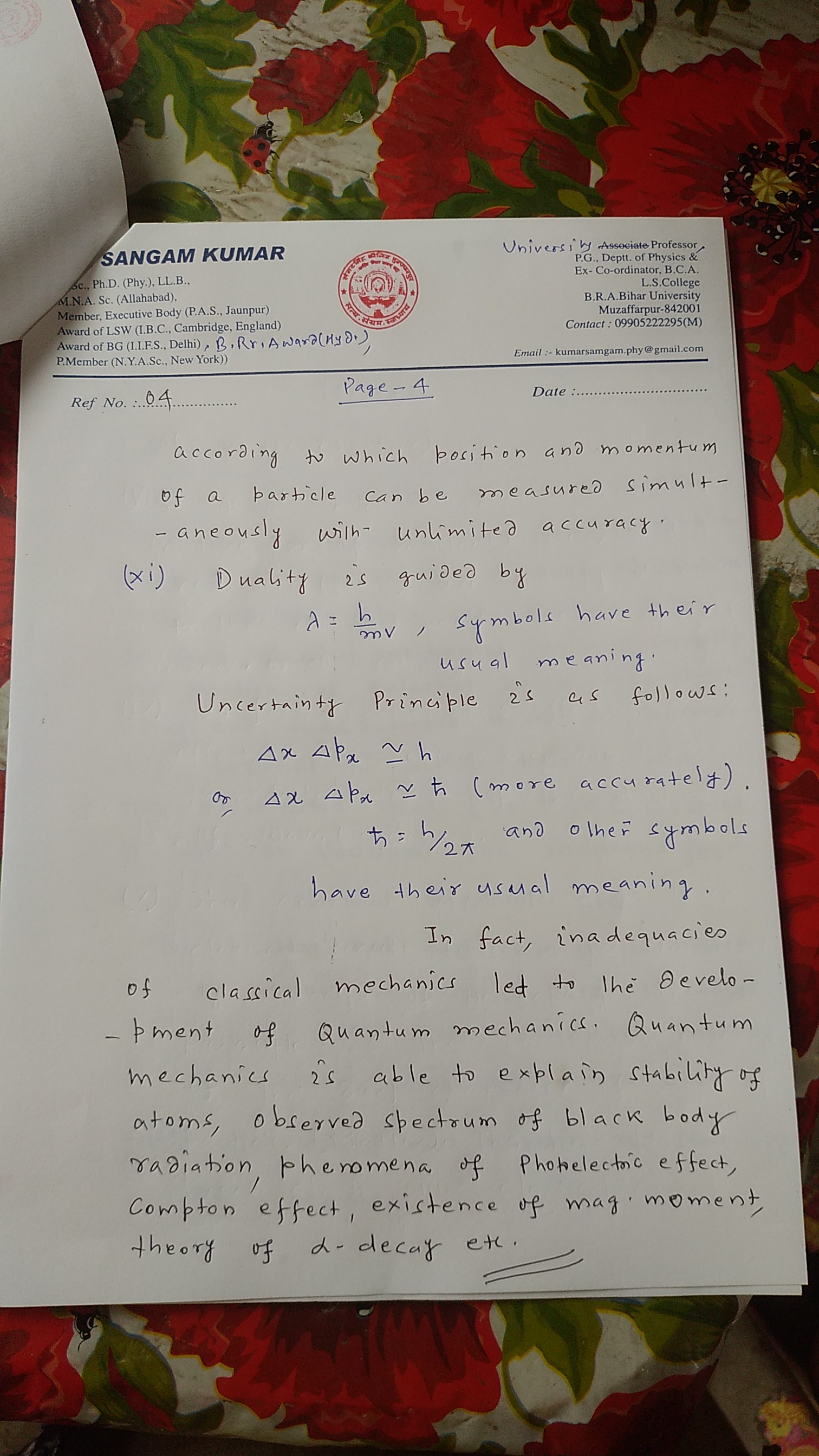 | 4 | UG - 3rd Year | Quantum mechanics |