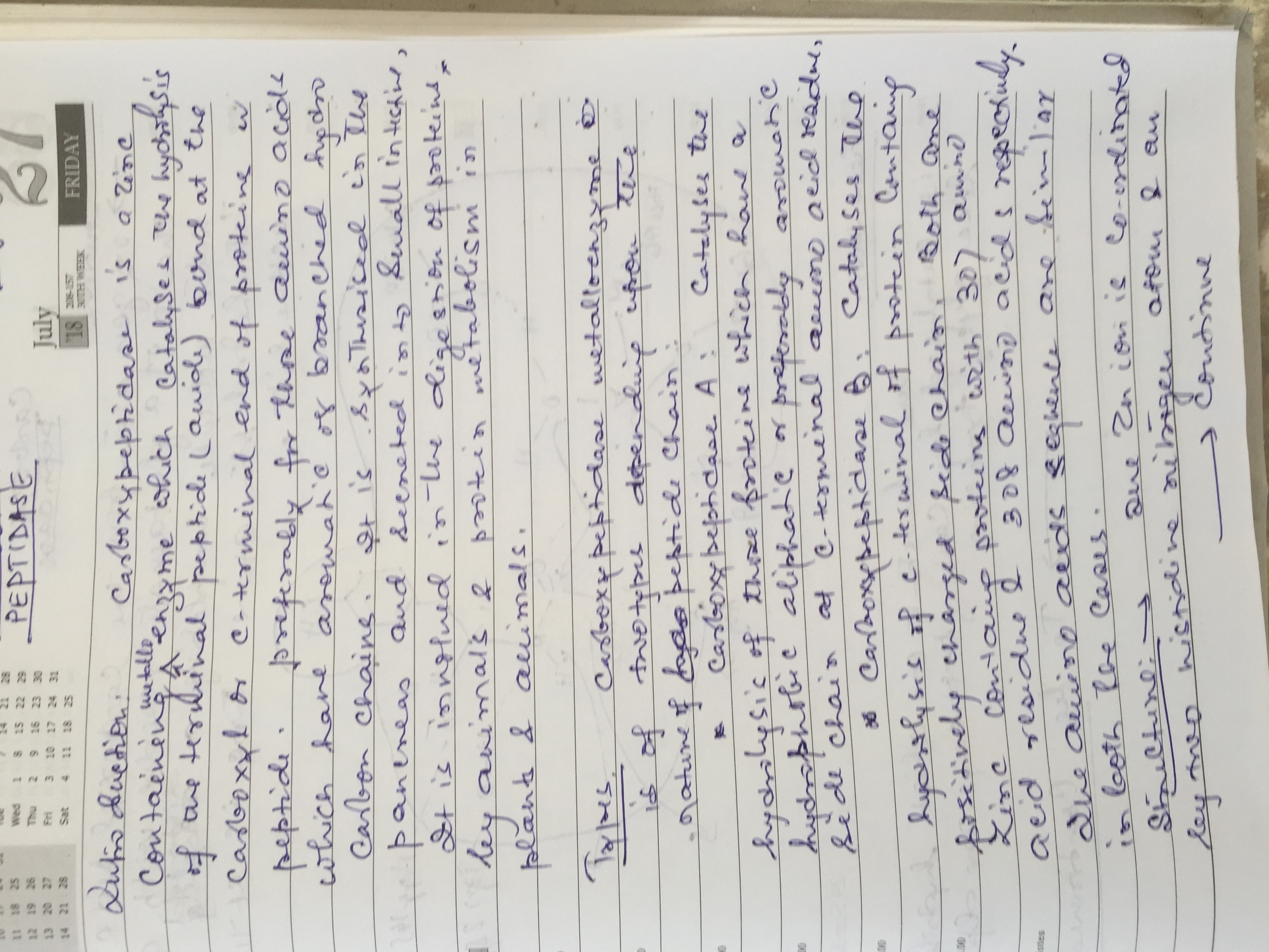 | 142 | PG - III Semester | Carboxy peptidase |