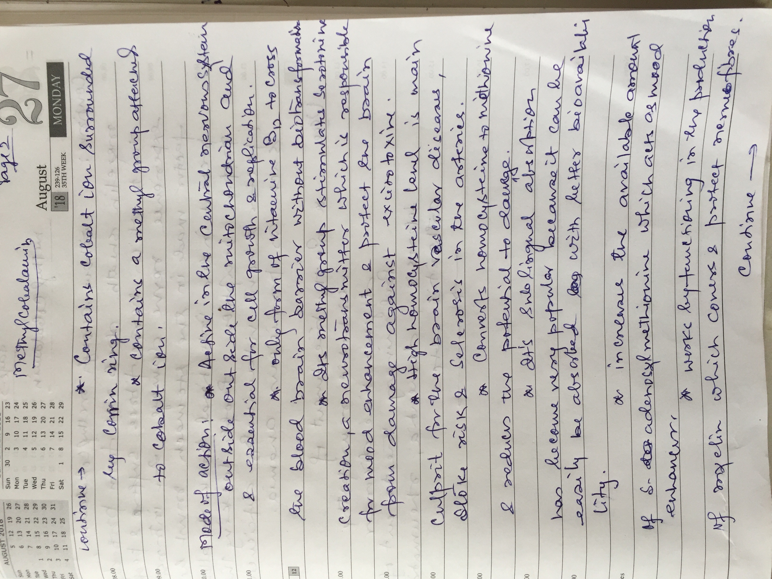 | 127 | PG - III Semester | Methylcobalamin |