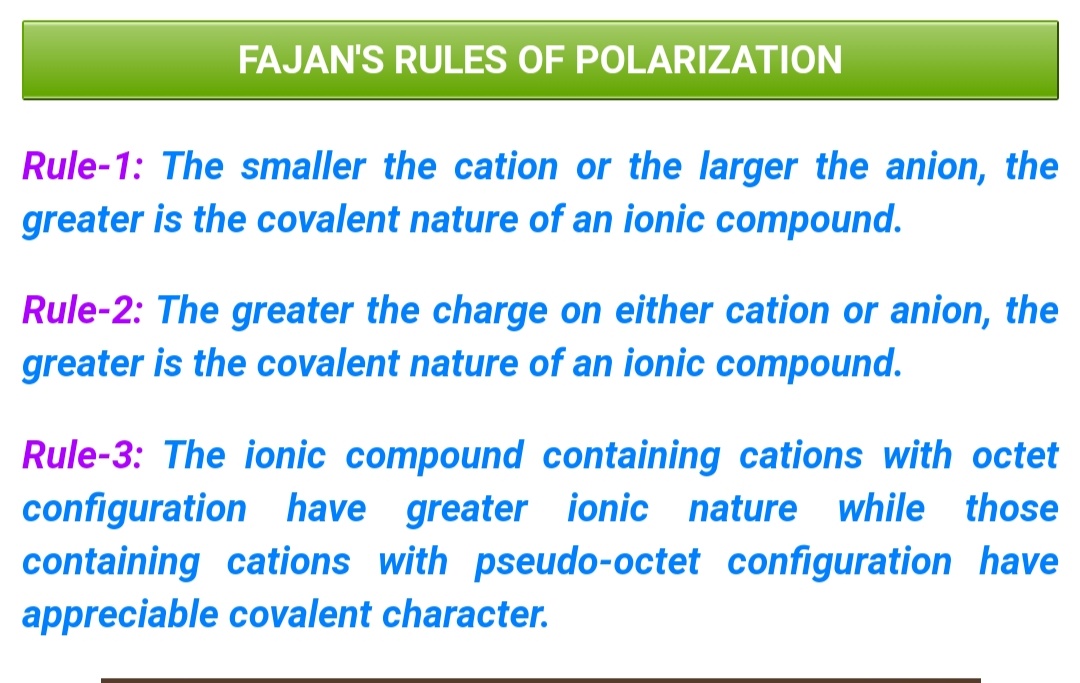 | 121 | UG - 1st Year | Fajans rule of polarization |