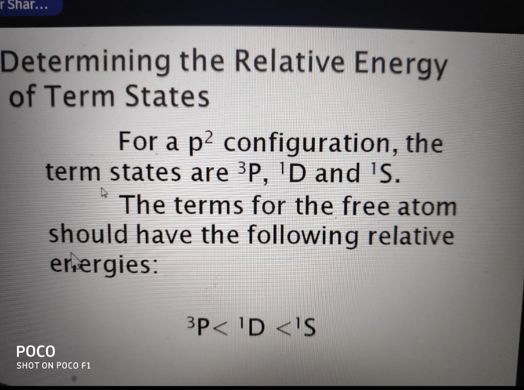 | 107 | UG - 3rd Year | determination of energy stste or term symbol |