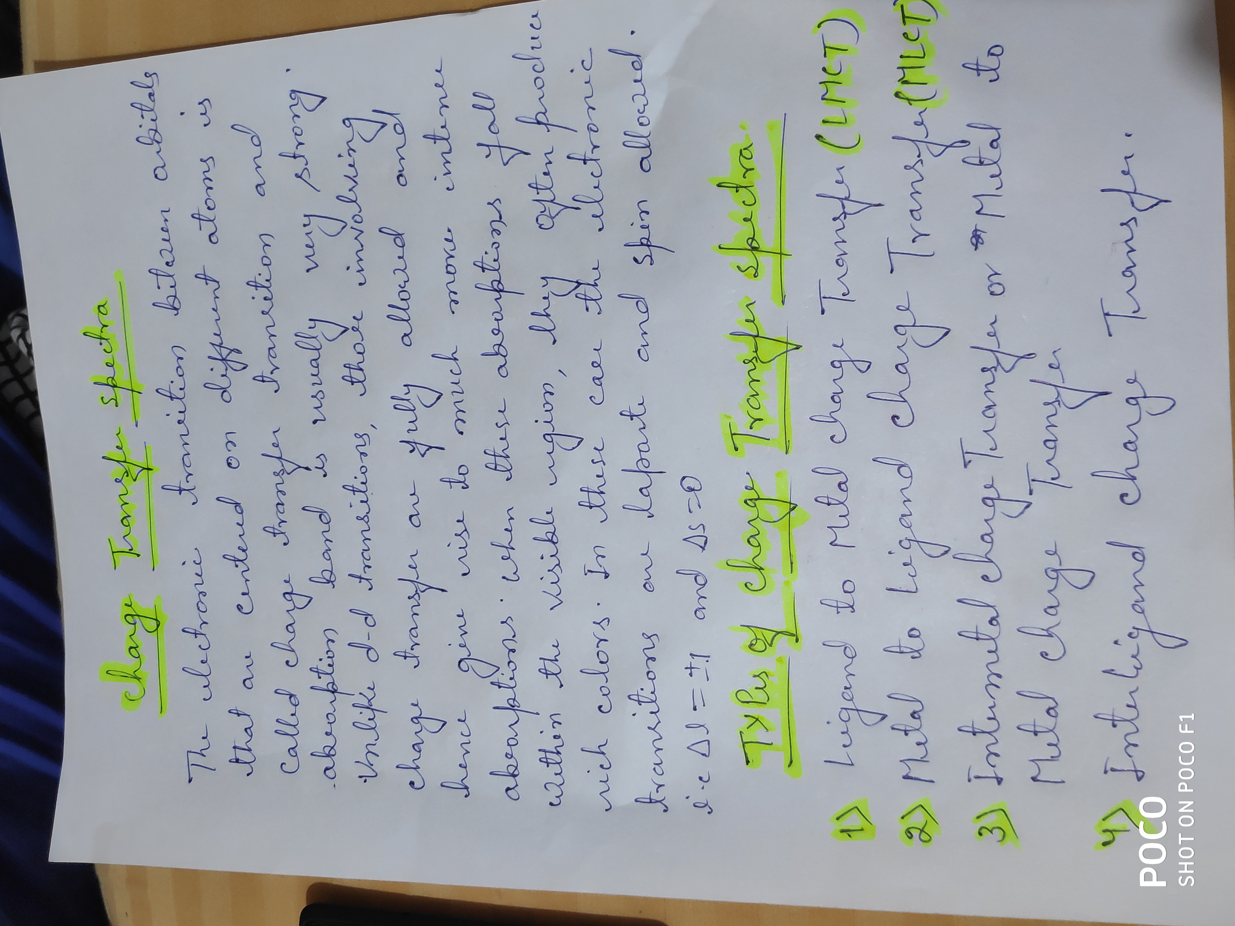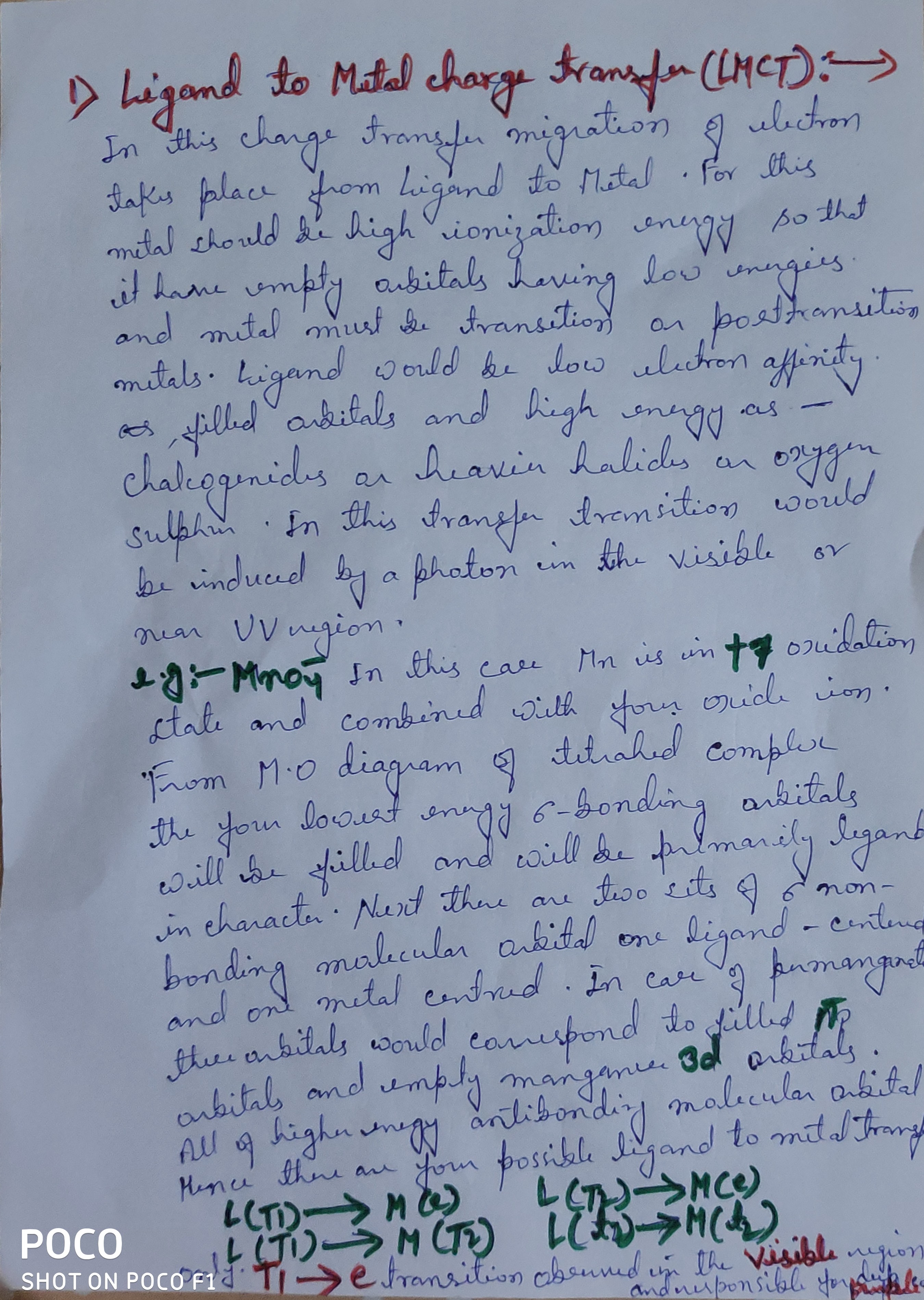 | 242 | PG - II Semester | metal to ligand transfer |