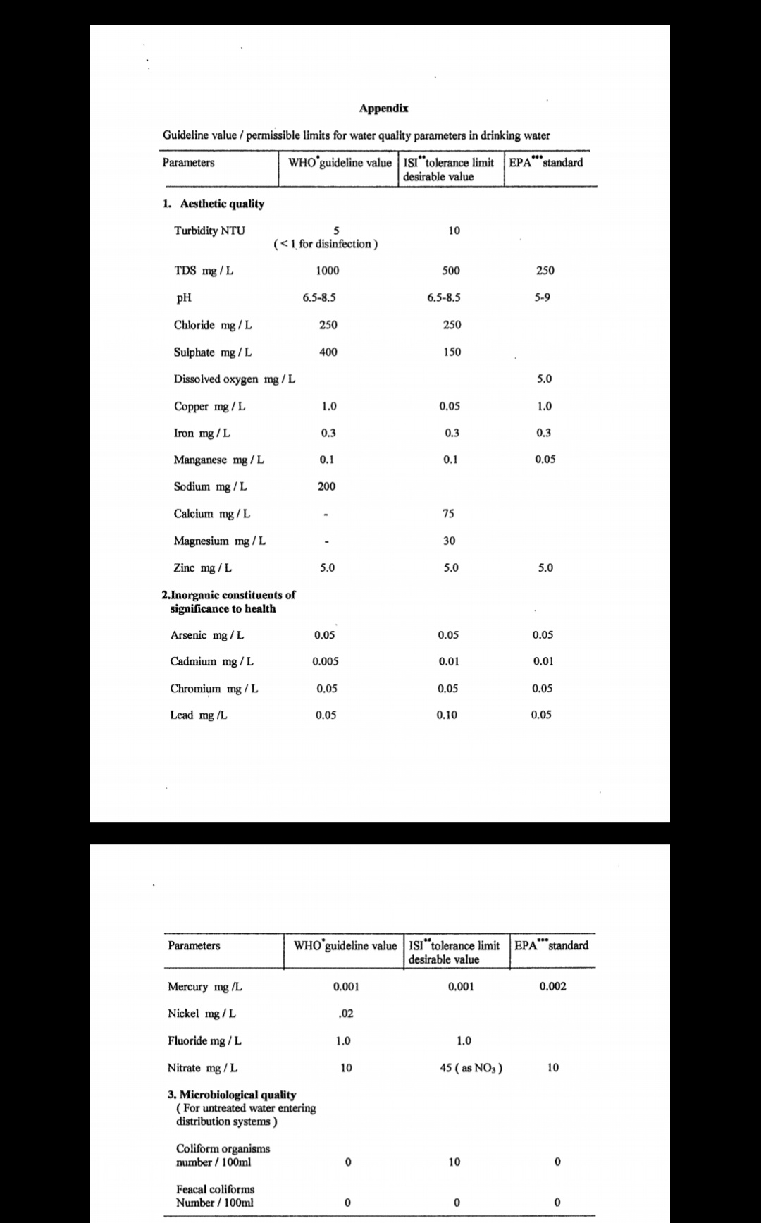 | 236 | PG - III Semester | permissible limit of water qyality parameters |
