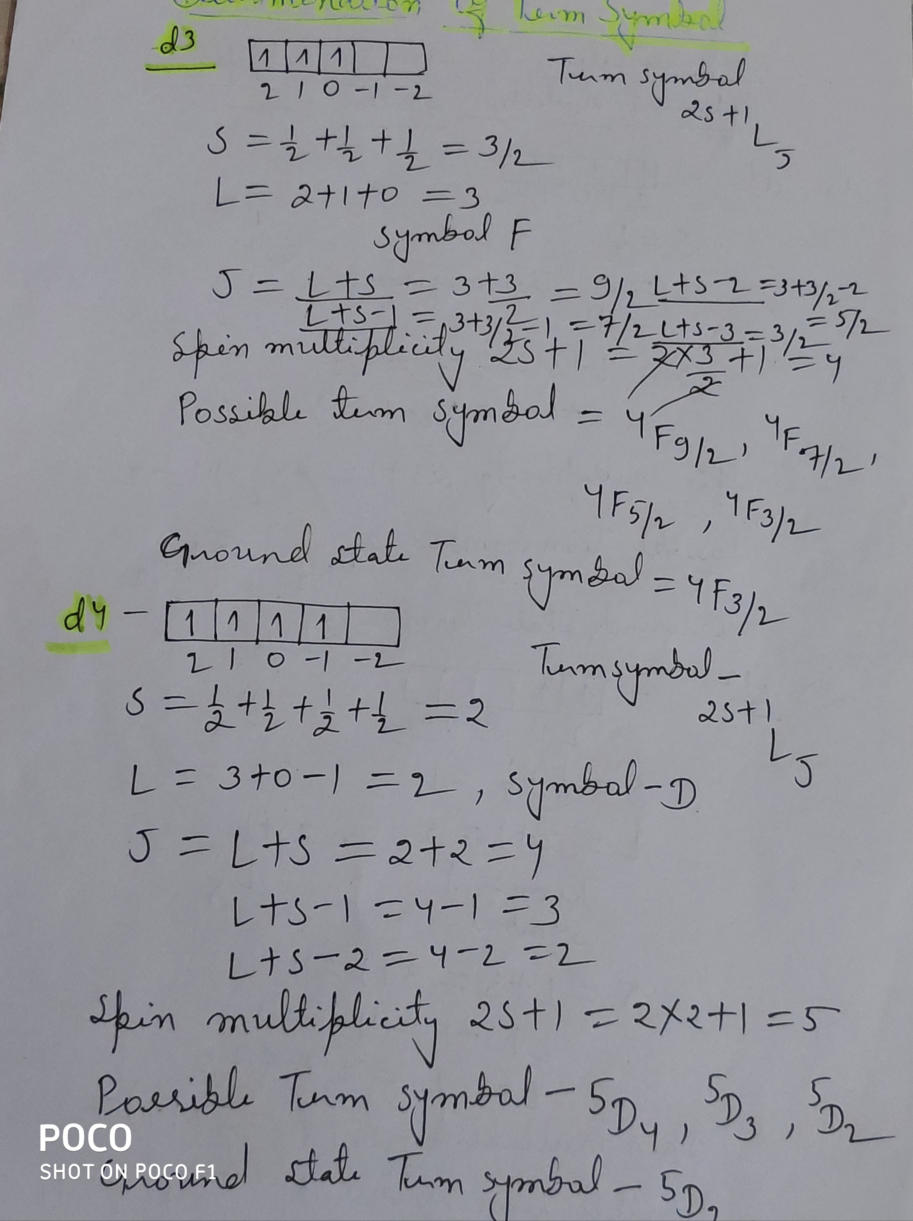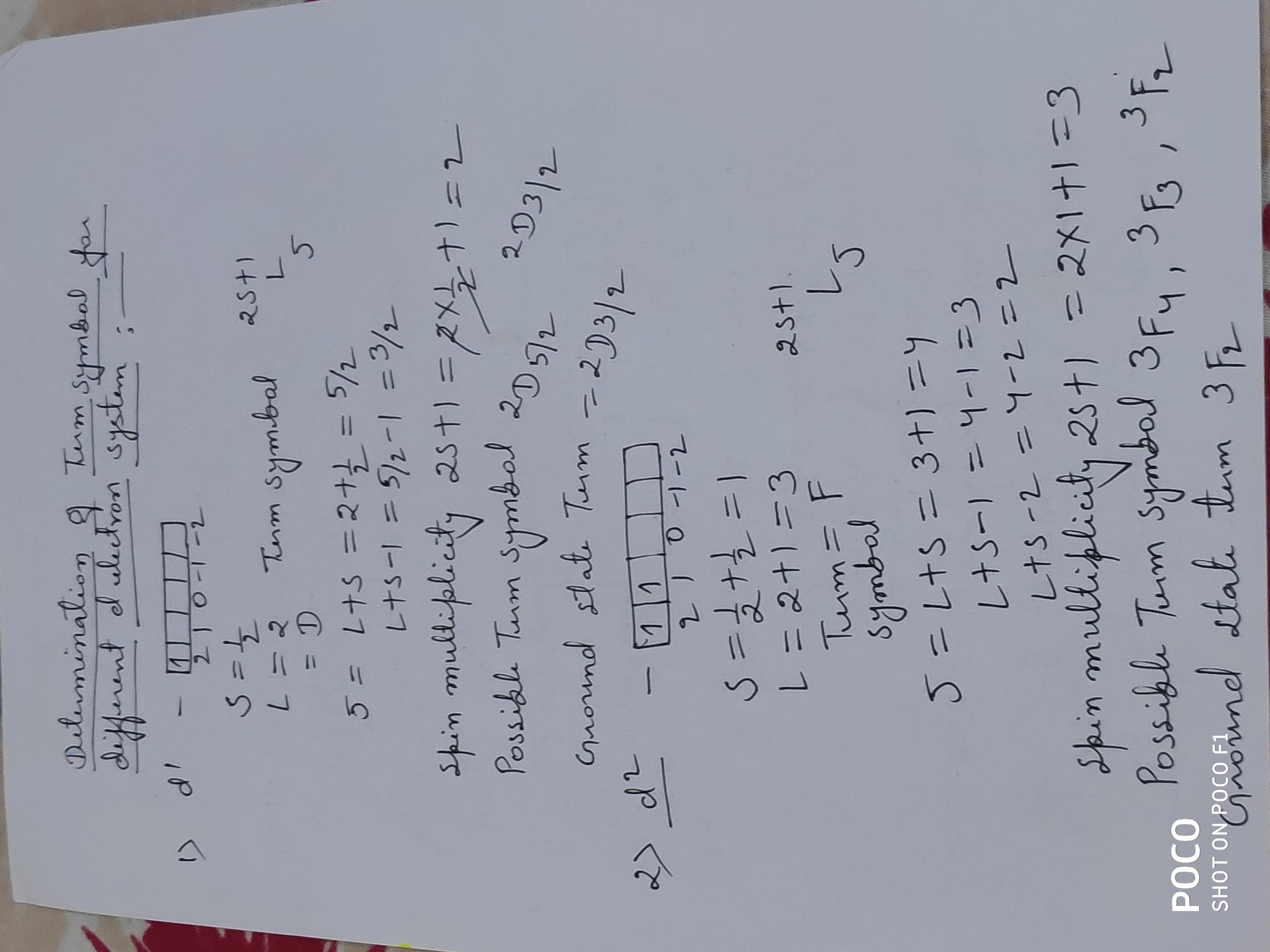 | 481 | PG - II Semester | determination of term symbol d3 d4 system |