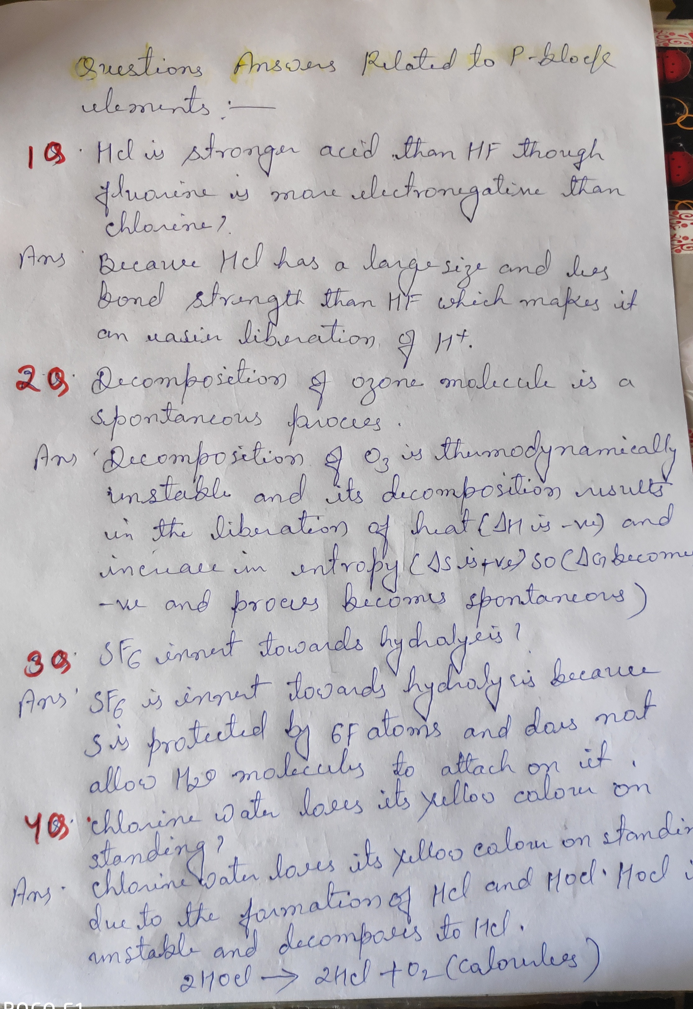 | 1024 | UG - 1st Year | Question answer related to p block elements |