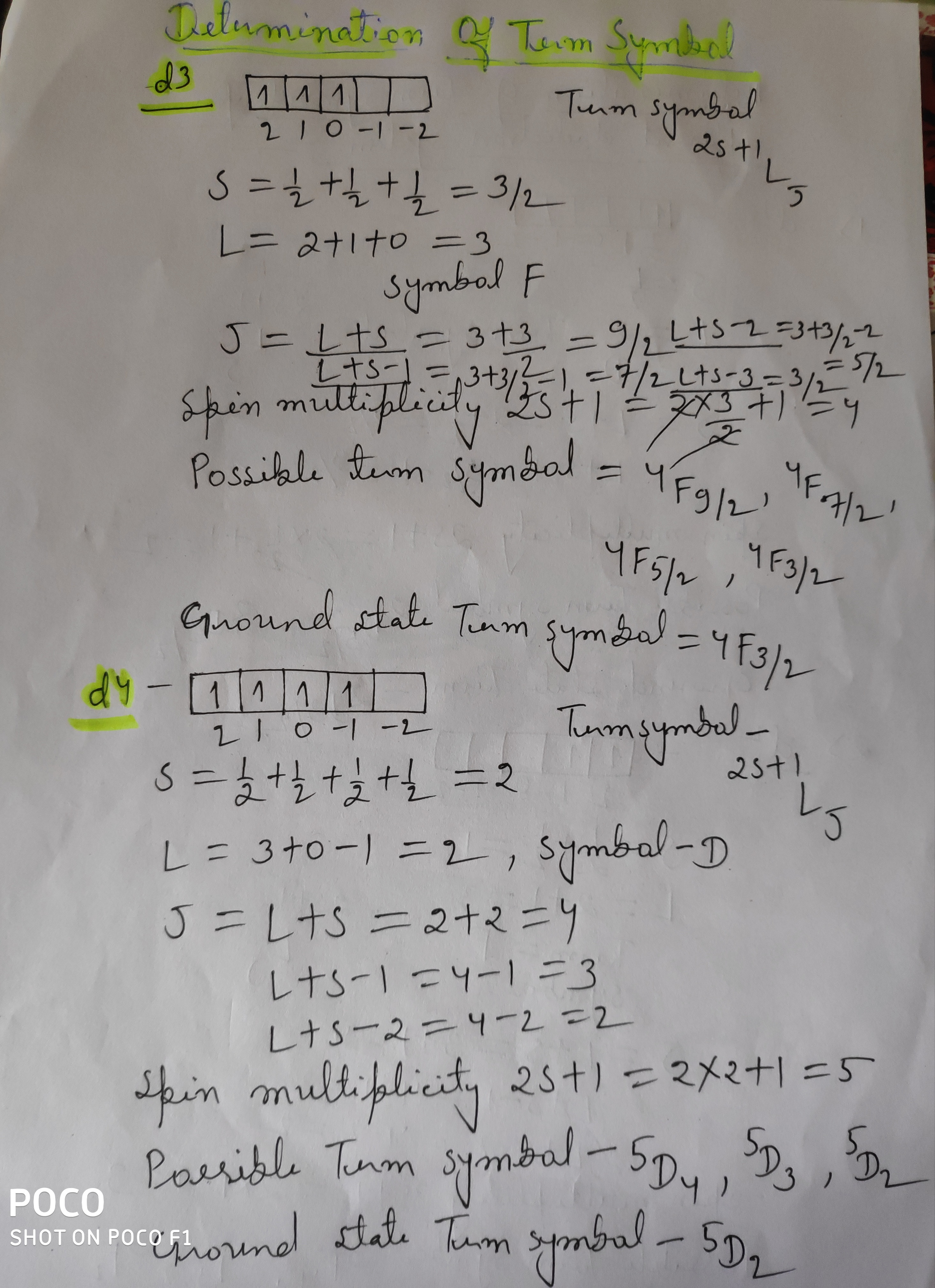 | 1394 | PG - II Semester | determination of term symbols for d3 d4 |