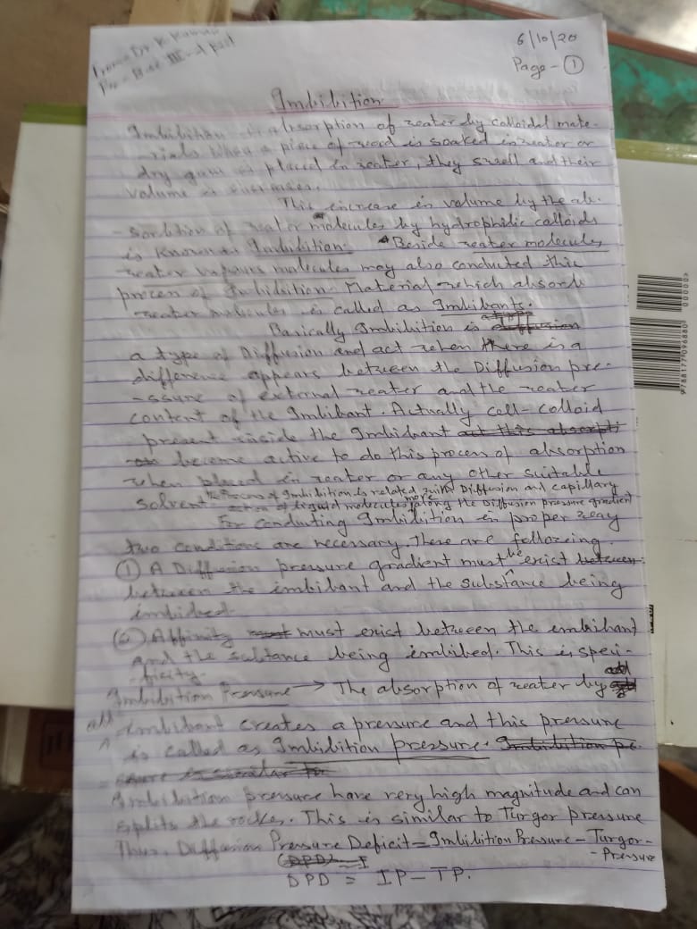 Absorption of water.. Continued |