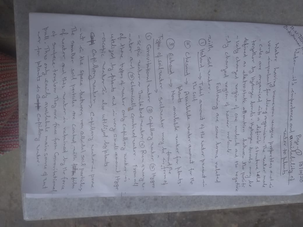 Water- it's availability and importance for Plants |