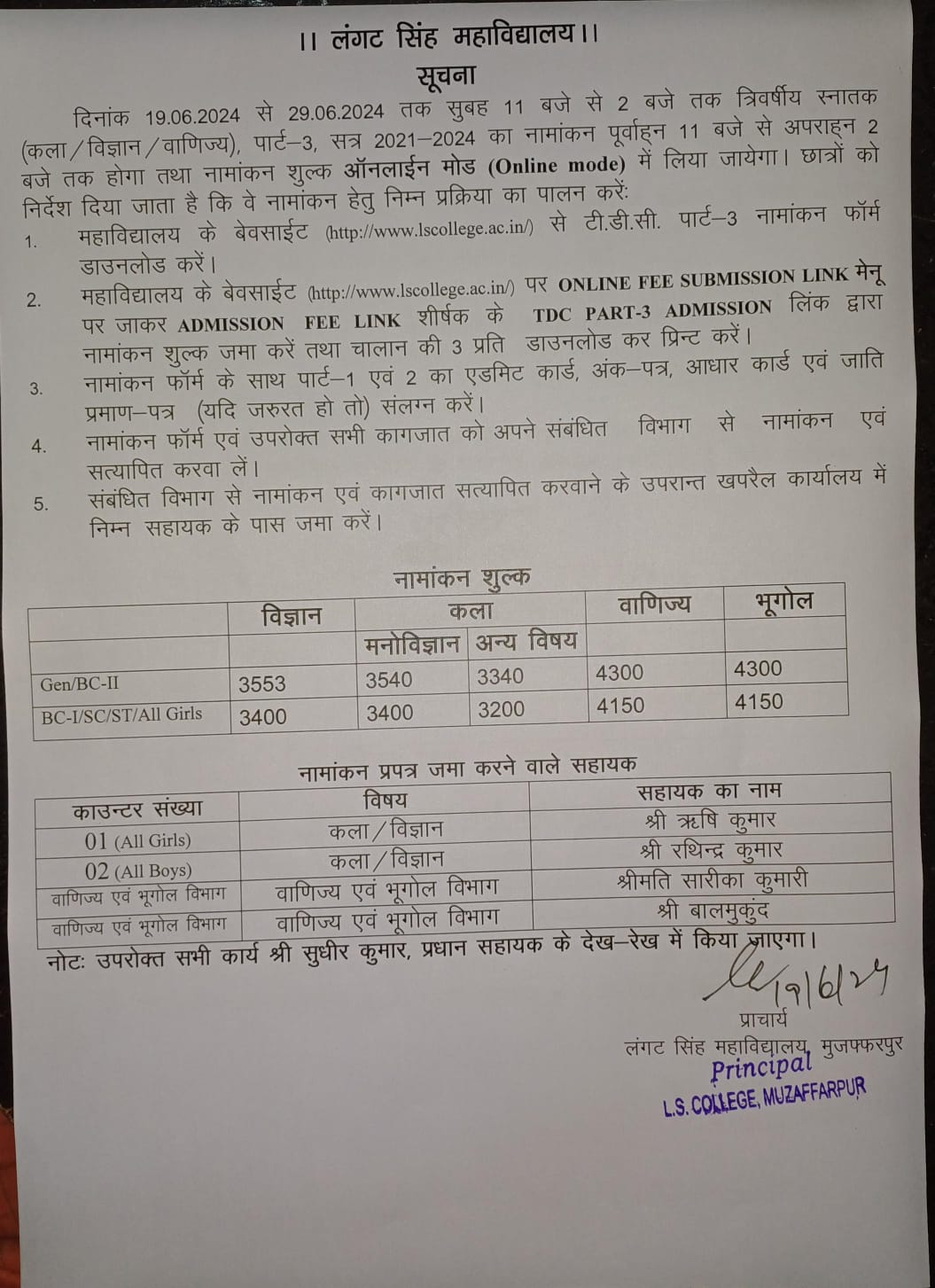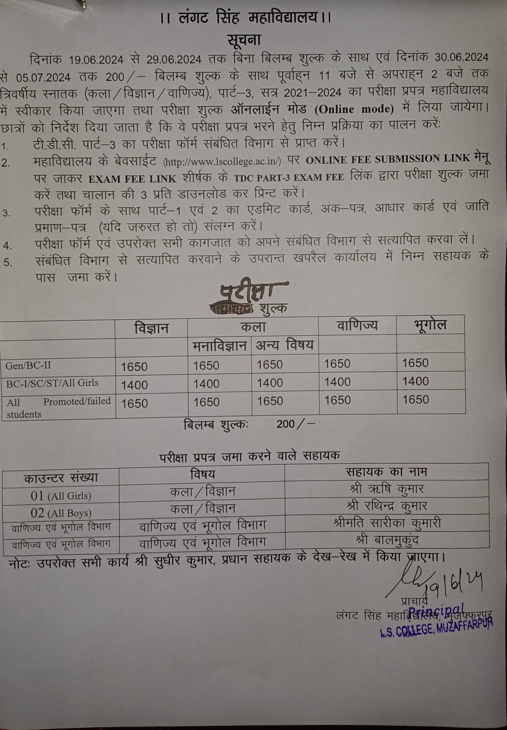 NOTICE OF ADMISSION AND EXAM FORM FOR TDC PART-3