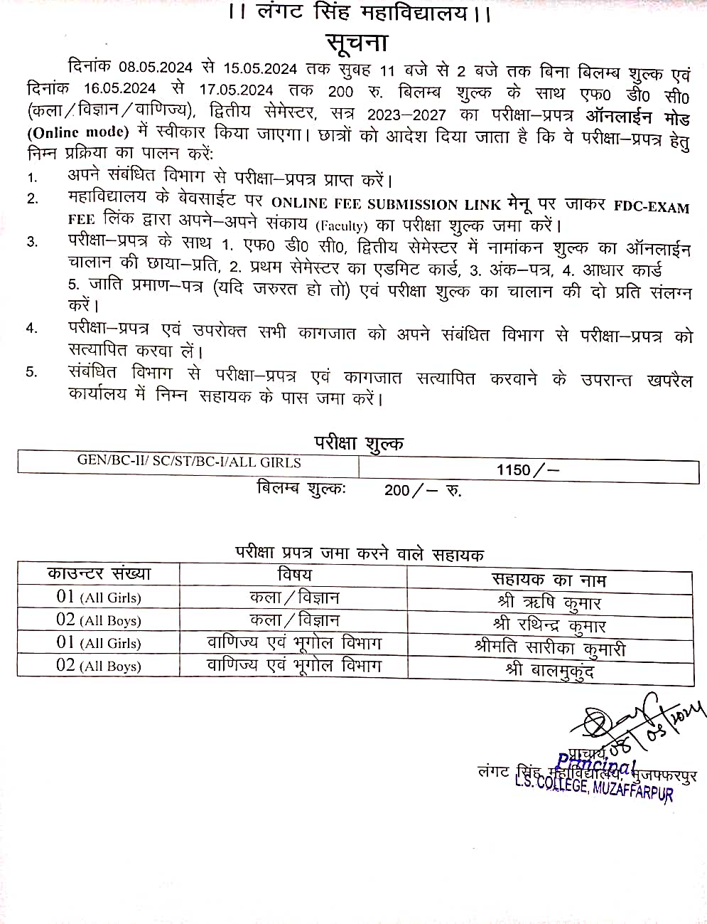 NOTICE FOR FDC-2ND SEM EXAM, 2023-27