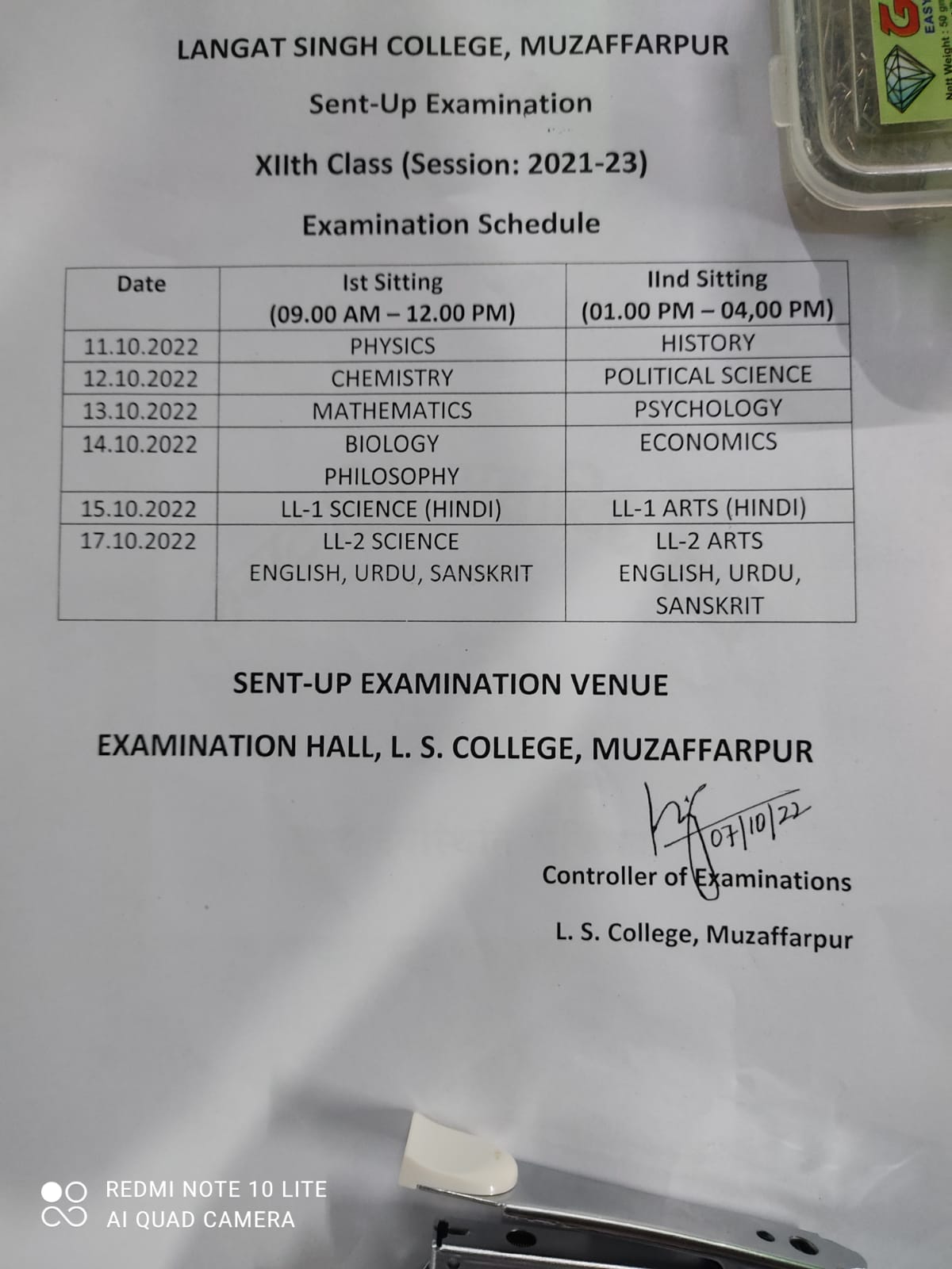 Programme of Inter Sentup test, session 2021-23